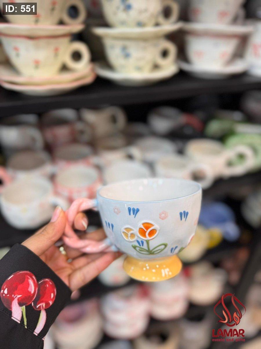 كوب هاند ميد حجم كبير مع نقشة وردة