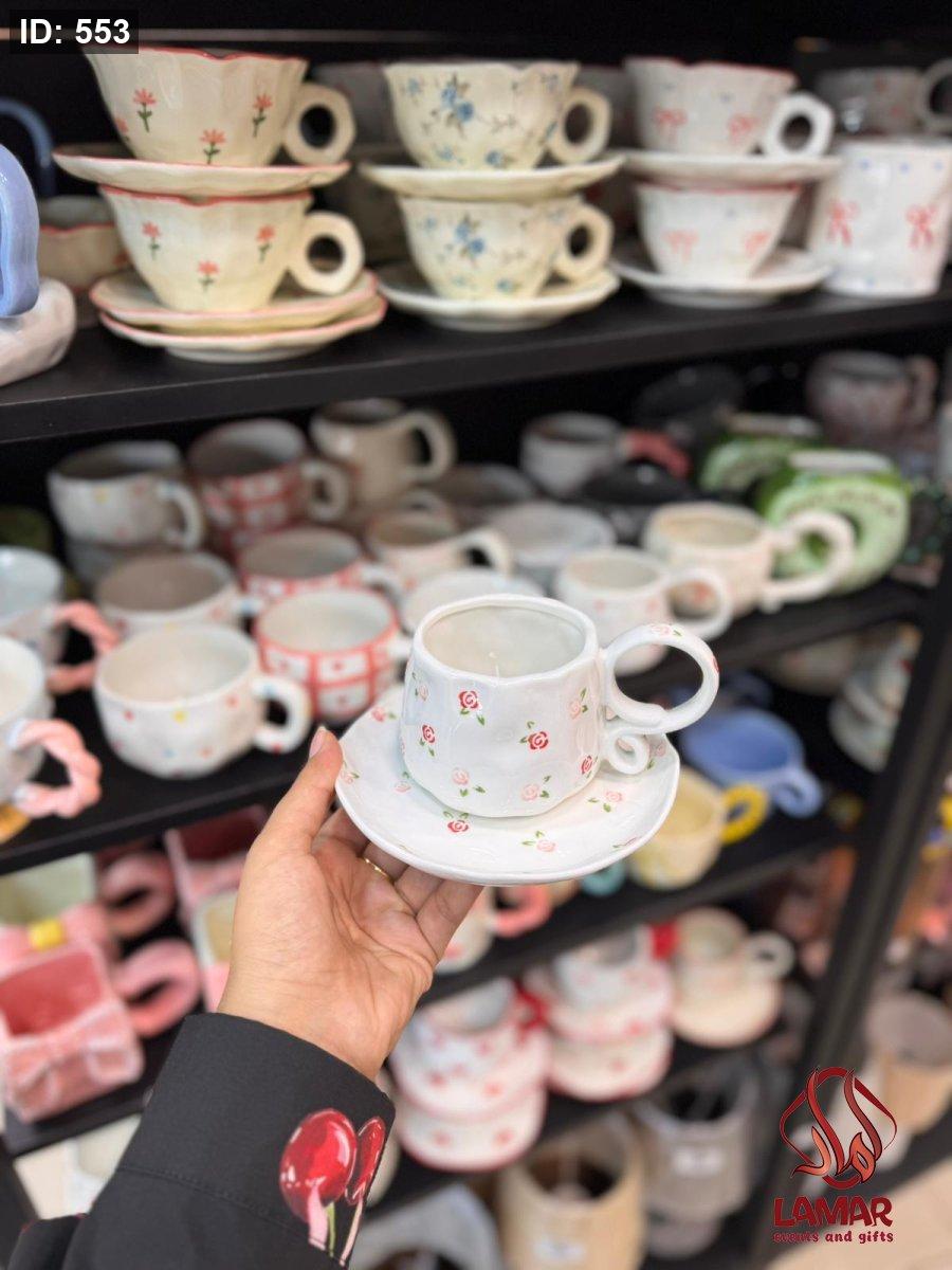 مج هاند ميد نقشة وردة احمر وزهري